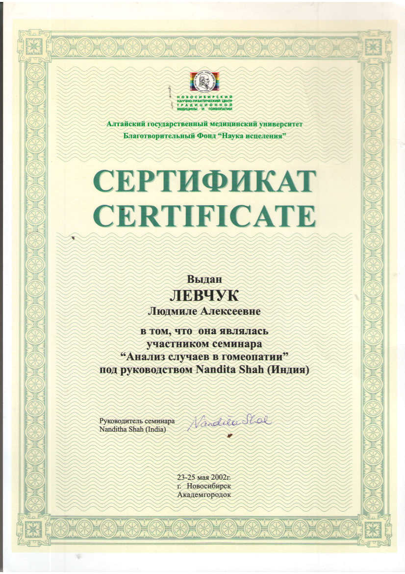 2002г – семинар Нандиты Шах (Индия) «Анализ случаев в гомеопатии».