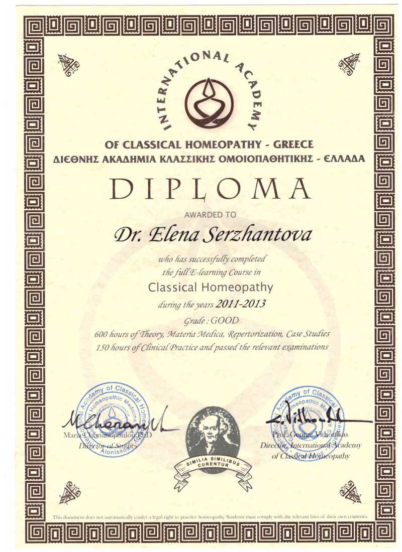 Очарованная Гомеопатией, прошла обучение в Международной академии классической гомеопатии Дж.Витулкаса (Алонисос, Греция).